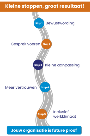 Inclusie hoeft niet ingewikkeld te zijn. Geen dure trajecten, geen grote reorganisaties. Het begint met eerlijk kijken naar hoe jouw werkvloer nu écht werkt en ontdekken welke kleine stappen het grootste verschil maken.
